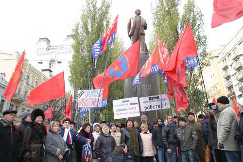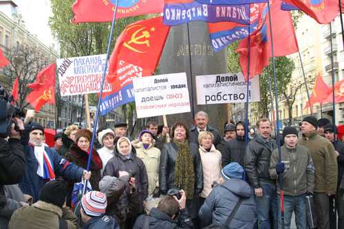 7 ноября 2007 г., Киевская городская партийная организация ПСПУ во главе с Наталией Витренко и Владимиром Марченко возложили цветы к памятнику В.И.Ленину и шествием по Крещатику отпраздновали 90-летие Великой Октябрьской социалистической революции. Активисты ПСПУ держали в руках лозунги: "Долой капиталистическое рабство", "Долой капиталистов уродов – даешь союз славянских народов", "Долой паханов – даешь прогрессивных социалистов".