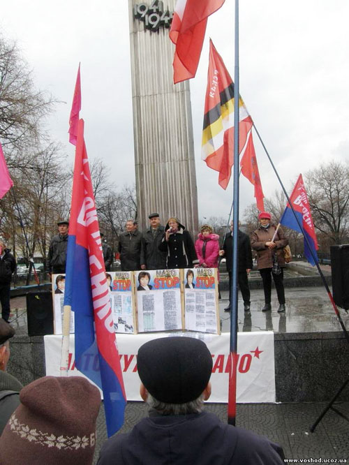 Затем митинг продолжил свою работу. Яркие выступления секретаря Луганского горкома ПСПУ Харитонова А.П., Мельника В.В. Первого секретаря Луганского обкома СПУ, Заварыка А.В. майора запаса, участника боевых действий в Афганистане,первого секретаря Ленинского райкома СПУ в г.Луганске, Русанова Г.П. полковника запаса, ветерана Вов, члена КПУ, Шушпанникова Н.Г. полковника запаса, председателя Союза советских офицеров в Луганской области, члена КПУ, Ушаковой И.Н., председательницы Луганской городской организации Всеукраинской общественной женской организации "Дар жизни" , секретаря Луганской областной молодежной организации "Молодая Гвардия ПСПУ" - Качура Максим - воспринимались бурными аплодисментами присутствующих на митинге. Митинг завершился принятием резолюцией , единогласно проголосованной "ЗА" участниками митинга, подписанной по поручению митинга руководителями партийных и общественных организаций.