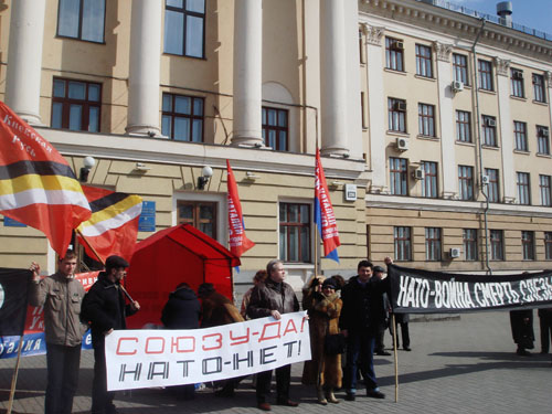 Митинг-пикет под девизом "НАТО - нет! Союзу - да!" прошел 15 марта в центре города Запорожья. Активисты Партии "Киевская Русь", Партии "Відродження українського села" ряда общественных организаций города, а также депутаты местных советов от блока Наталии Витренко "Народная оппозиция" жестко осудили политику оранжевой верхушки Украины: Ющенко, Тимошенко, Яценюка по втягиванию Украины в НАТО. Это противоречит воле украинского народа и международным обязательствам нашей страны.