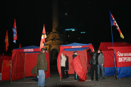 В 00 час. 01 мин. 31марта 2008 года представители трех политических партий молниеносно развернули палаточный городок на площади Независимости, в центре г.Киева.