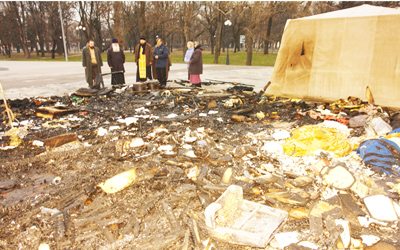 Около 5 утра неизвестные бросили зажигательную смесь в походный храм-палатку, расположенный около Екатерининской церкви в Чернигове.