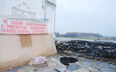 "Оранжевый" антицерковный террор: в Чернигове сожгли походный храм!