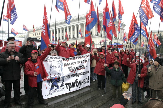 Прогрессивные социалисты совместно с партией Киевская Русь после получения вести, принесшей победу, собрали митинг на площади Независимости. На митинге проинформировали киевлян о том, что саммит НАТО в Бухаресте, в лучших украинских традициях своим решением "преподнес" гарбуза Виктору Ющенко и Джорджу Бушу, исключив из повестки дня вопрос о присоединении Украины и Грузии к ПДЧ. Бухарестский саммит НАТО достойно принял эстафету от девушек-киевлян, которые первого апреля поднесли гарбуза, приехавшему в столицу Бушу, демонстрируя этим свое презрение к кровавому диктатору и его марионеткам в Украине. Ведущие страны НАТО осознали, что всякие авантюрные попытки втянуть Украину в альянс против воли народа Украины преступны и противоречат базовым нормам демократии и международного права, нарушают хрупкий баланс сил в Европе. Об этом в своих выступлениях рассказали первый заместитель председателя Прогрессивной социалистической партии Украины Владимир Марченко, председатель партии Киевская Русь Павел Баулин, депутат Луганского областного совета Любовь Корсакова, депутат Николаевского областного совета, руководитель фракции блока Наталии Витренко "Народная оппозиция" Лариса Шеслер, депутат Донецкого областного совета, руководитель фракции блока Наталии Витренко "Народная оппозиция" Людмила Каеткина, депутат Черниговского городского совета Иван Донец и многие другие, выступившие на митинге.