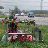 Чтобы это понять, достаточно проехать 100-150 километров по «новой» трассе. Главное, чем выделяется эта дорога – не качество асфальтового покрытия или новая разметка – это десятки венков, крестов и памятников тем, чьи жизни унесли аварии на этой дороге. Десятки трагедий, смертей и увечий – результат «строительства».