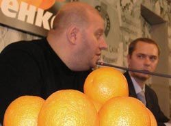 Кстати, сегодня мы поставили апельсины на стол, а не яблоки. Хочу обратить внимание, что апельсин – это оранжевое яблоко, то есть apple chin – китайское яблоко. Точно так же как ананас – это pine apple – это елочное яблоко. То есть все, как ни крути, идет от яблок. Так что apple chin – это наш ответ сегодняшним бандюковичам, и мы будем своим сторонникам раздавать апельсины, а не яблоки, в этот раз.