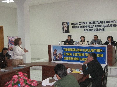 На мероприятии были обсуждены вопросы, касающиеся непосредственного ознакомления женщин, занимающихся предпринимательской и фермерской деятельностью, с процессом осуществляемых в стране экономических реформ, с действующими правовыми нормами в целях широкого привлечения женщин в предпринимательскую деятельность и сферу надомного труда.